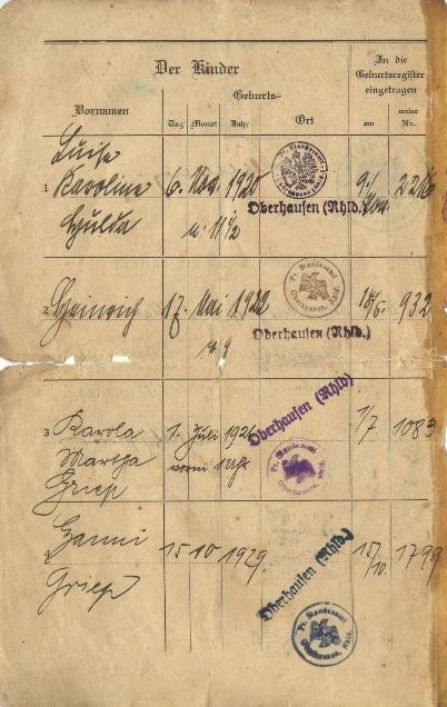 KINDEREN VAN OTTO GRIEP EN ANNA HUPKE |