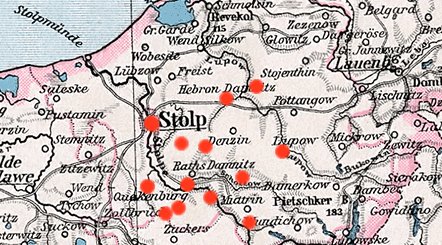 in dorpjes in de 'Landeskreis', de regio waar Stolp de