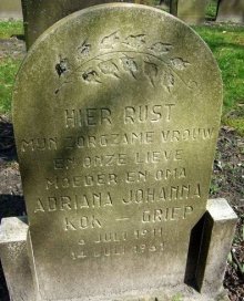 1902 te Maassluis. Ze overlijdt op 14 juli 1961 te Vlissingen en