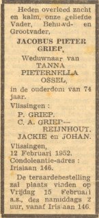 Griep, geboren op 14 april 1909 en na