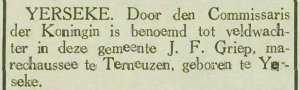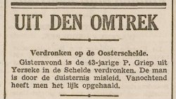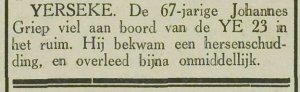 Nicolaas Griep wordt op 16 mei 1903 te Yerseke geboren. Hij overlijdt
