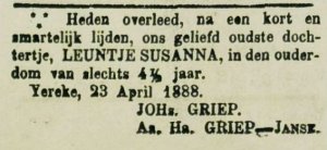 Suzanna Griep wordt op 15 december 1883 te Schore geboren.