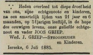 te Yerseke. Zijn vrouw overlijdt in 1913 te