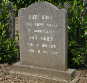 Griep (1879-1977) Jan Griep wordt geboren op 20 mei 1879 te